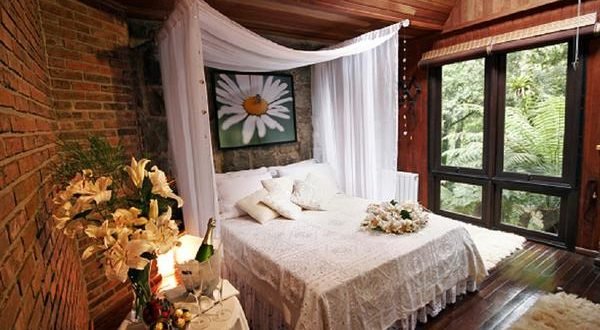 A Pousada também oferece mimos especiais, como chinelos de lã, incensários com aromas afrodisíacos, roupões e sais de banho, e na varanda cadeiras de balanço com mantas aconchegantes para curtir o friozinho da região. Entre as celebrações românticas disponíveis para o casal está a cena Honey Home, que será recebido com drink de boas-vindas em um ambiente especial para noite de núpcias. Dossel bordado à mão com cristais Swarovski sobre a cama, pétalas e arranjos de flores, além da cabana iluminada com velas, fazem parte da experiência. Puro encantamento!